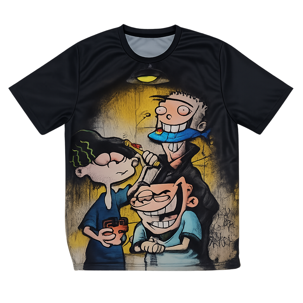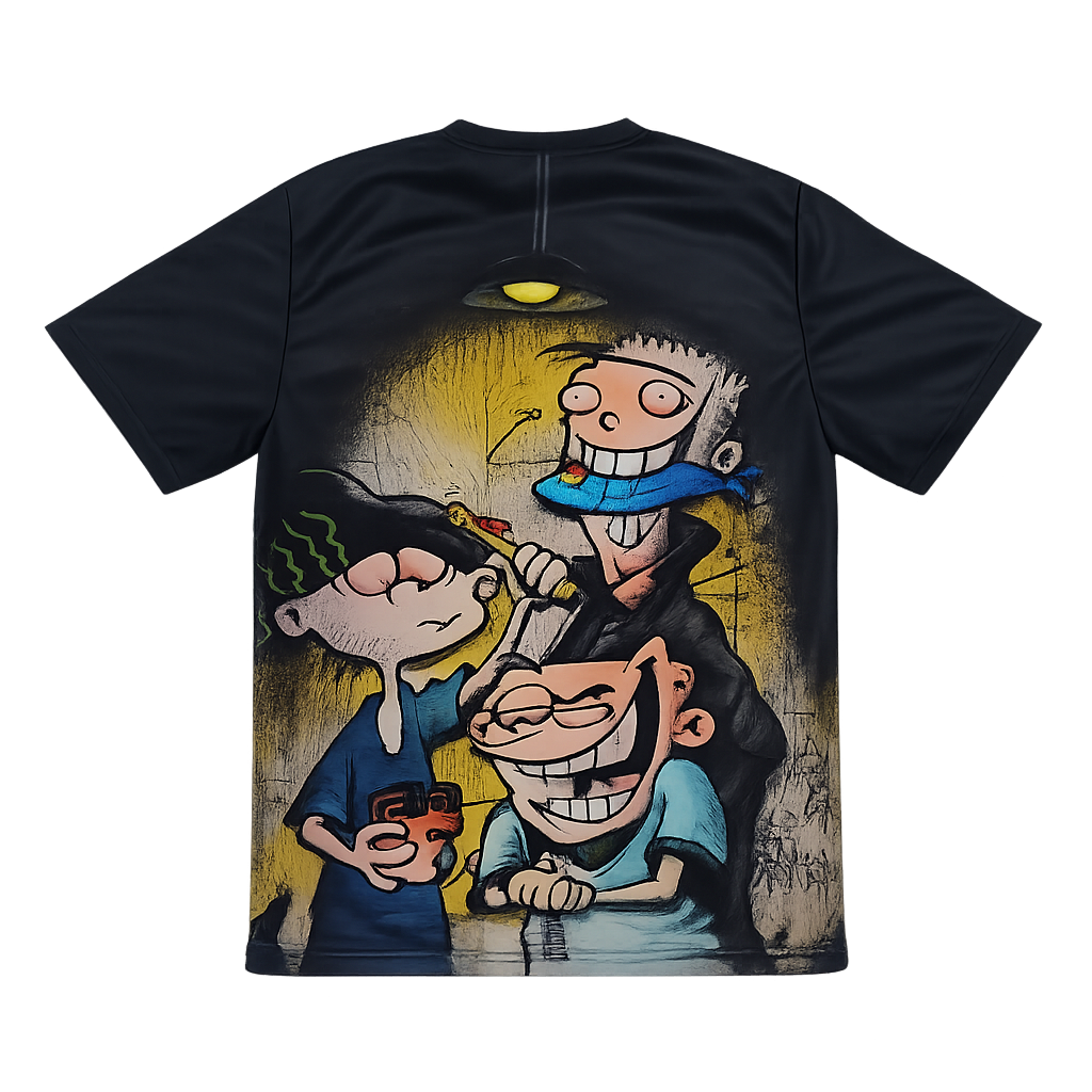 Straight out the backstreets and onto your fit. This tee brings raw cartoon chaos with a gritty graffiti twist, flipping classic mischief into full-on street art energy. The bold graphic hits hard against the black base, giving you that underground, after-dark vibe that stands out without trying too hard.