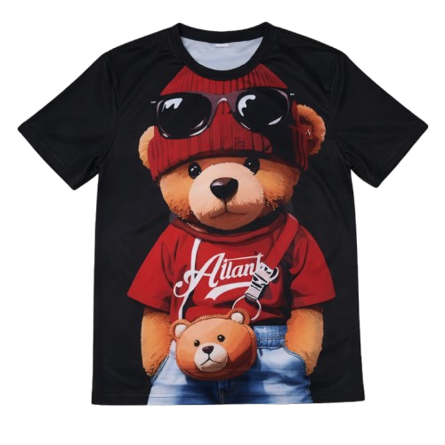 Cute meets certified drip. This tee flips a classic teddy into full street mode, rocking a red beanie, shades, and an Atlanta fit that screams confidence. The bold graphic pops hard against the black base, giving you playful energy with real street presence.